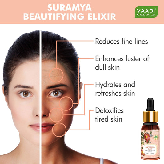 Suramya Beautifying Elixr (Pure Mix of Saffron, 24k Gold Leaves & Sweet Almond Oil) - Reduces Fine Lines, Improves Skin Complexion & Gives a Natural Glow (10 ml/ 0.33 oz)