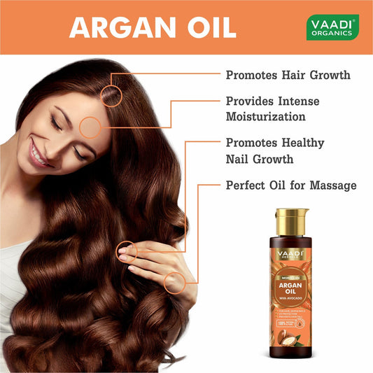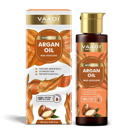 Cold Pressed Morrocon Argan Oil with Avocado- For Hair, Skin & Nails- Promotes Hair Growth- Skin Moisturisation-Healthy Nail Growth - UV Protection- (120 ml / 4.05 oz)
