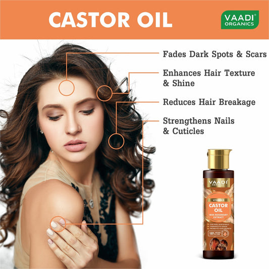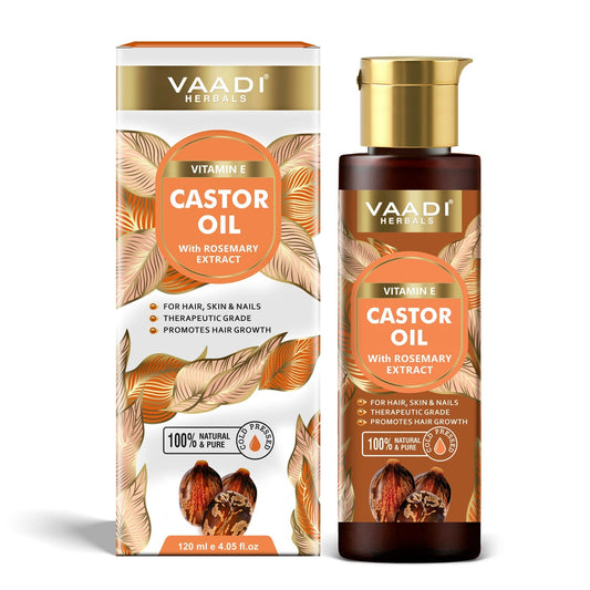 Cold Pressed Vitamin E Castor Oil with Rosemary Extract- For Hair, Skin & Nails- Promotes Hair Growth-Skin Hydrating-Strengthens Nails- Provides Shine-Reduces Hair Breakage-(120 ml / 4.05 oz)