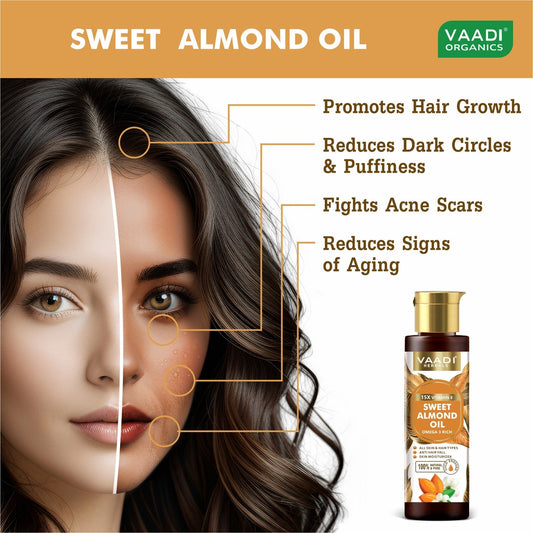 Cold-Pressed Sweet Almond Oil with Vitamin E - Anti Hair Fall - Removes Dark Circles- Skin Moisturizer-Promotes Hair Growth (120 ml / 4.05 oz)