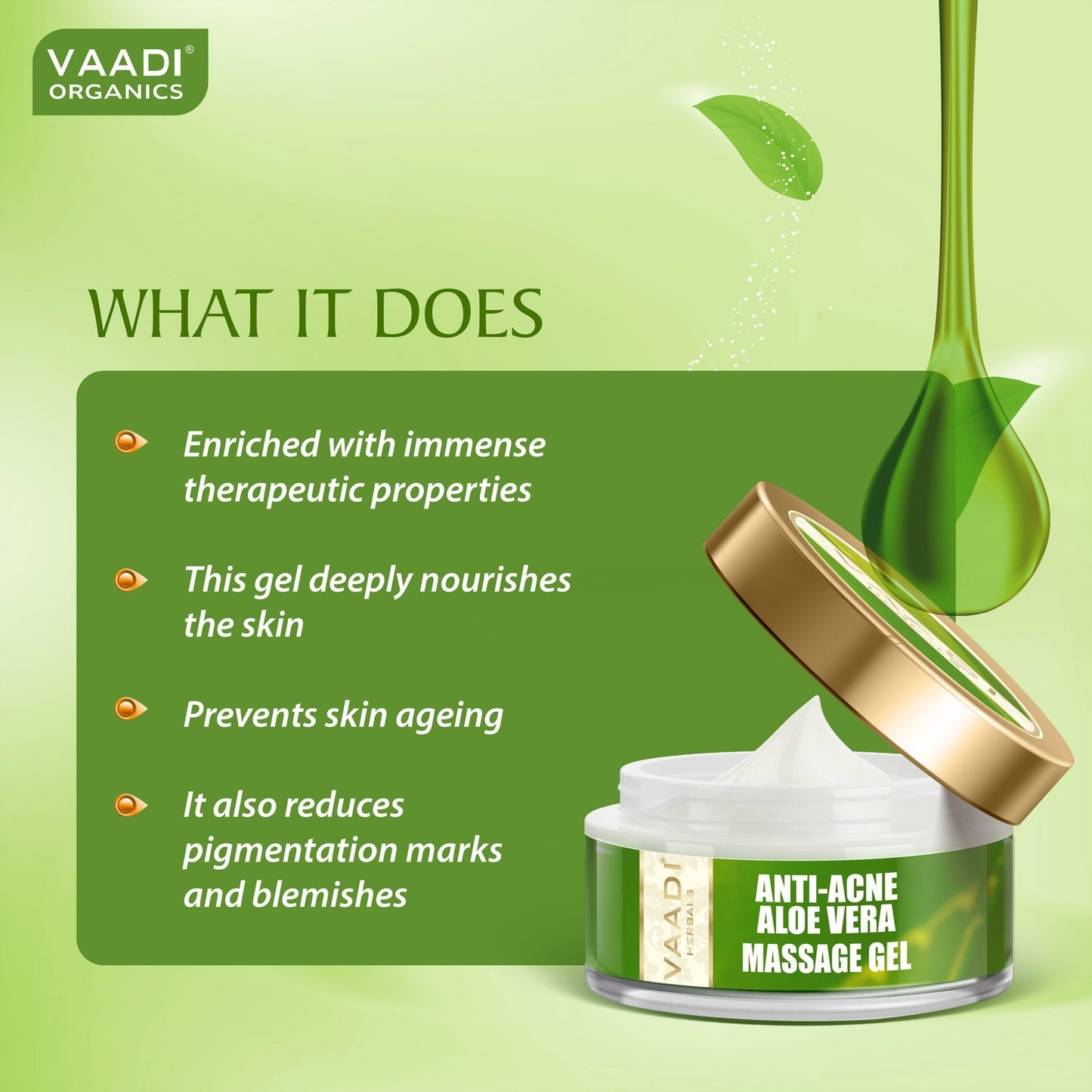 غني بخصائص علاجية هائلة ، هذا الجل يغذي البشرة بعمق ويمنع شيخوخة الجلد. كما أنه يقلل من علامات التصبغ والعيوب