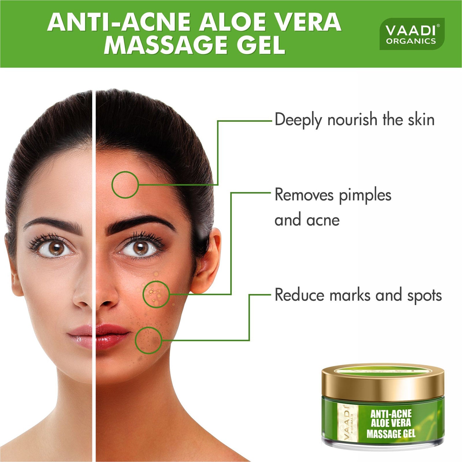 الصبار هو العلاج المثالي لأية مشاكل مرتبطة بالجلد. سواء كان حرق الشمس أو تهيج أو الحساسية أو سواء كانت الظروف الجوية الطبيعية التي تتعارض مع الجلد. يزيل الشتاء الليونة عن طريق تجفيف الجلد. يساعد الألوة فيرا الممزوج بزيت اللوز المرطب بشكل طبيعي على امتصاص المغذيات الأساسية للجلد بسهولة مما يساعد على تغذية البشرة في الظروف الجوية القاسية. جل الألوة فيرا المأخوذ من ورقة نبات الصبار غني بجميع الفيتامينات الحيوية التي تشكل درعًا مثاليًا ضد البرد. بفضل جودة فيتامين A و F و C و B-12 ، يعيد الألوة فيرا ليونة البشرة الخالية من العيوب. من خلال المساعدة على فتح المسام ، يساعد الصبار في ترشيح المغذيات المهمة لطبقات الجلد وبالتالي الشفاء من الداخل. الجلد يعيد ويغذى وفي أفضل حالاته الجذابة على الإطلاق.