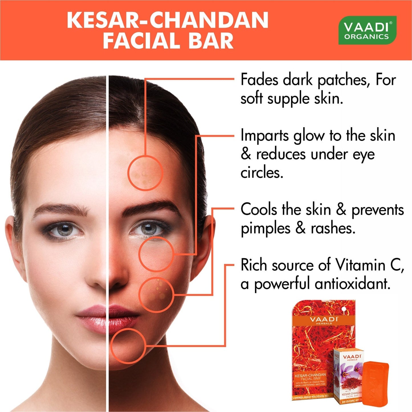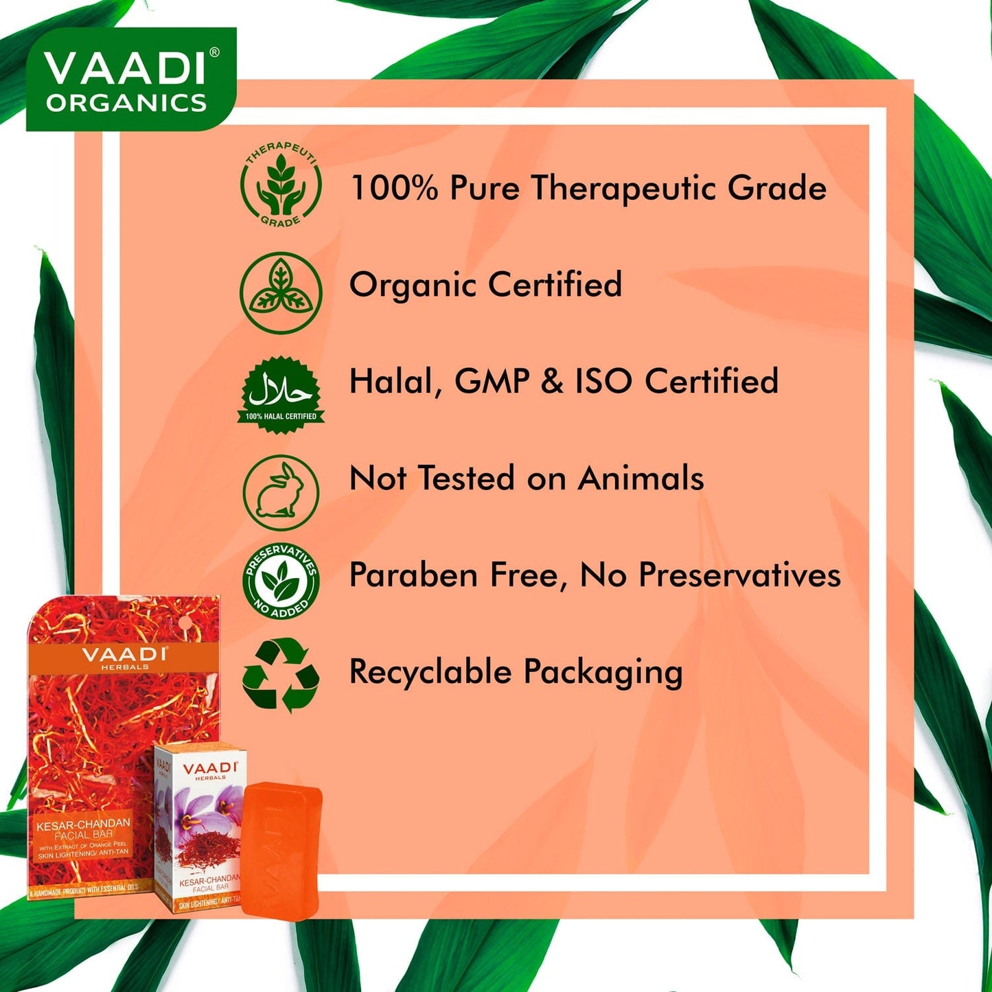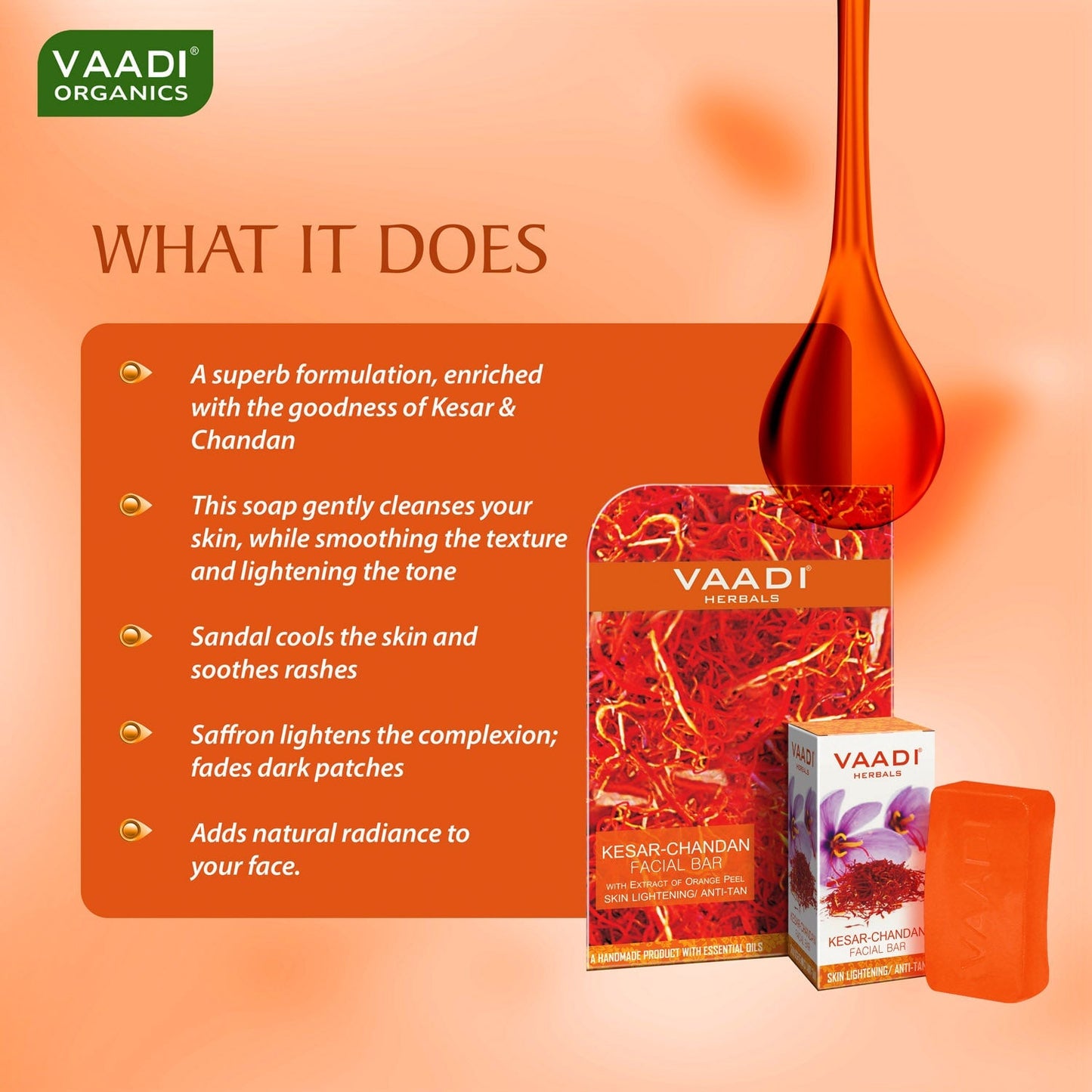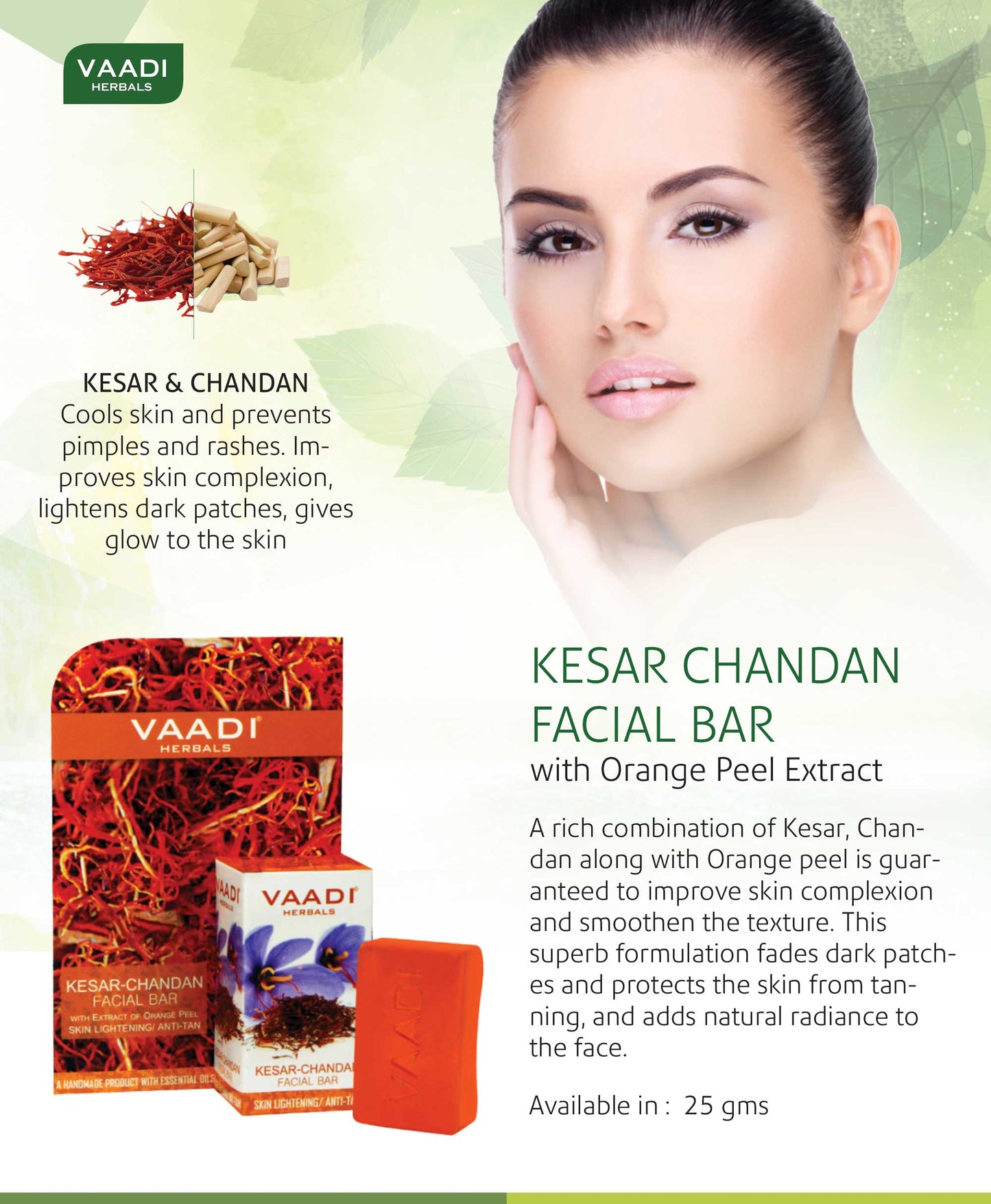 مزيج غني من Kesar و Chandan مع قشر البرتقال مضمون لتحسين بشرة بشرتك وتنعيمها. هذه التركيبة الرائعة تبهت البقع الداكنة وتحمي البشرة من الدباغة ، مضيفة إشراقة طبيعية لوجهك.