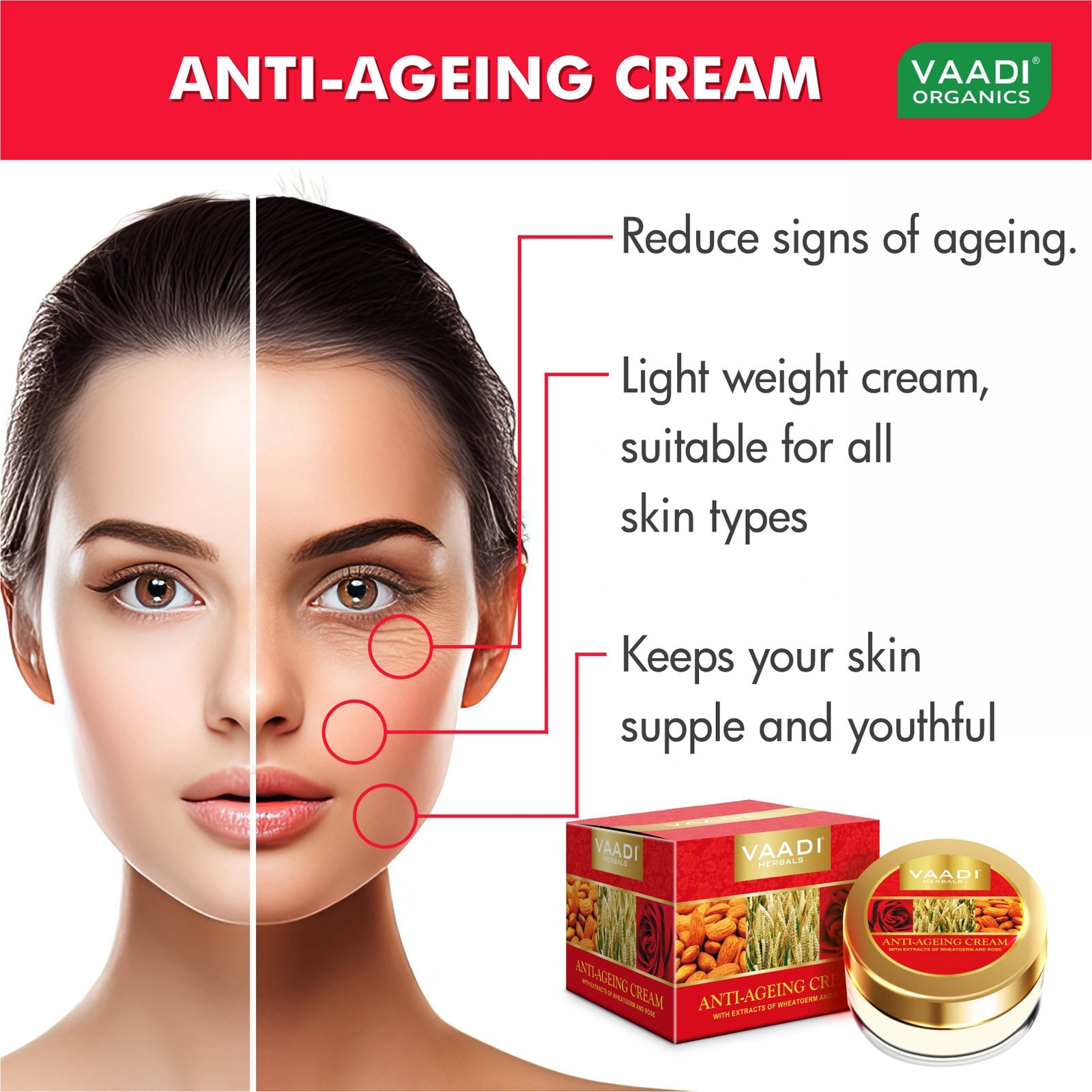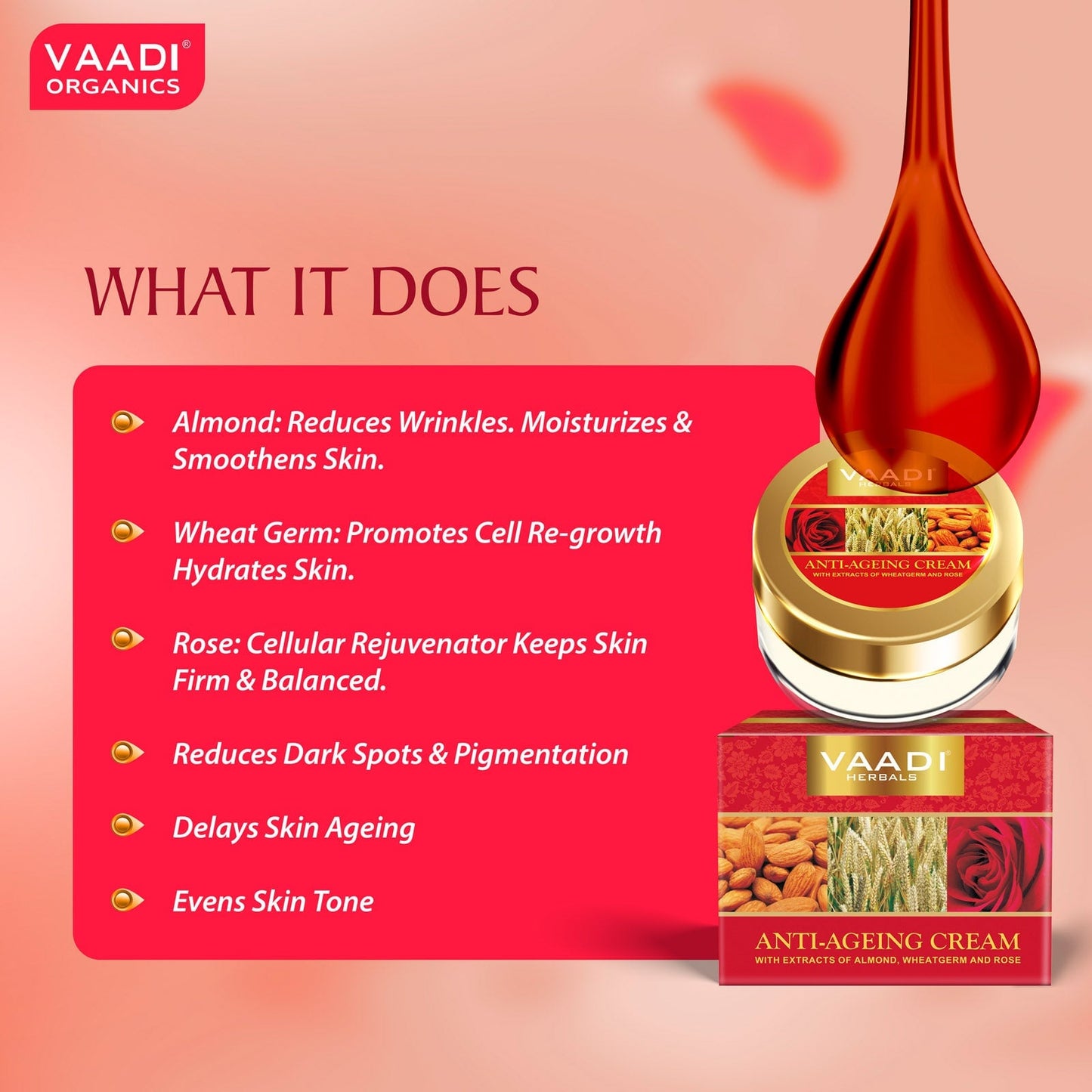 كريم عضوي مضاد للشيخوخة مع اللوز ، قمح - يعزز الكولاجين ويؤخر التجاعيد - يحافظ على بشرة ناعمة وشابة (30 جرام / 1.1 أونصة)