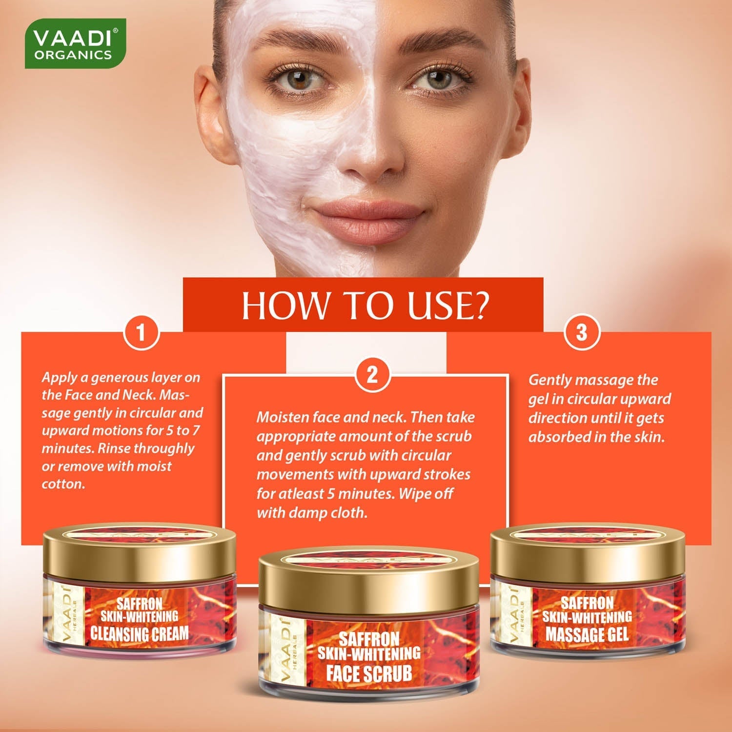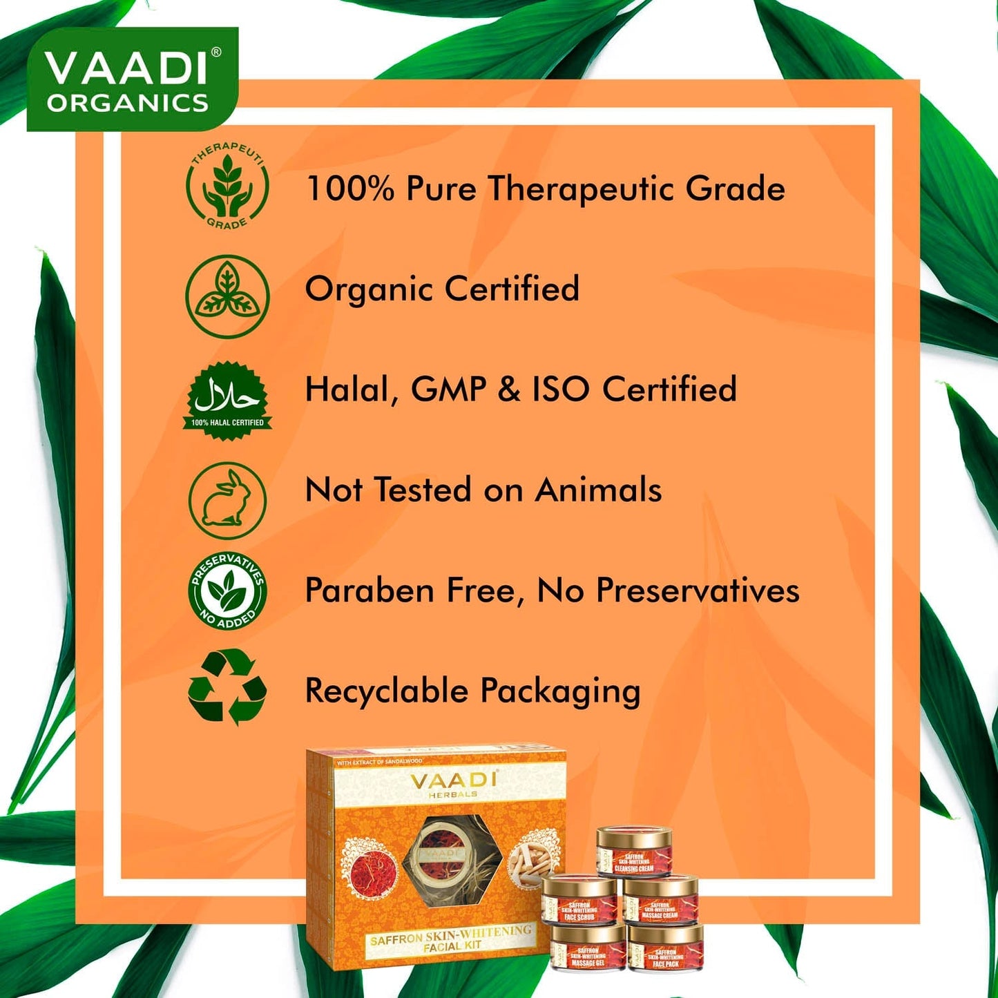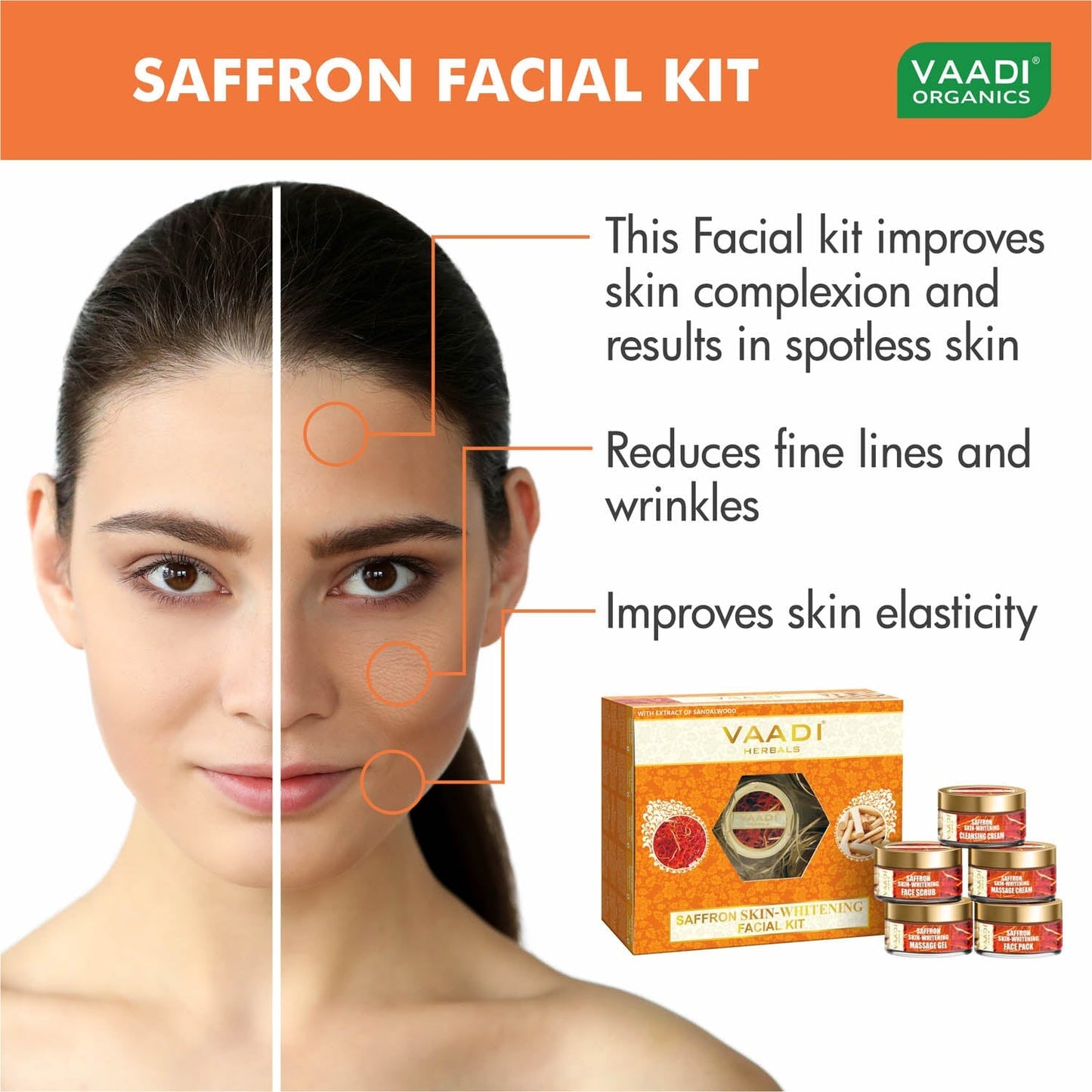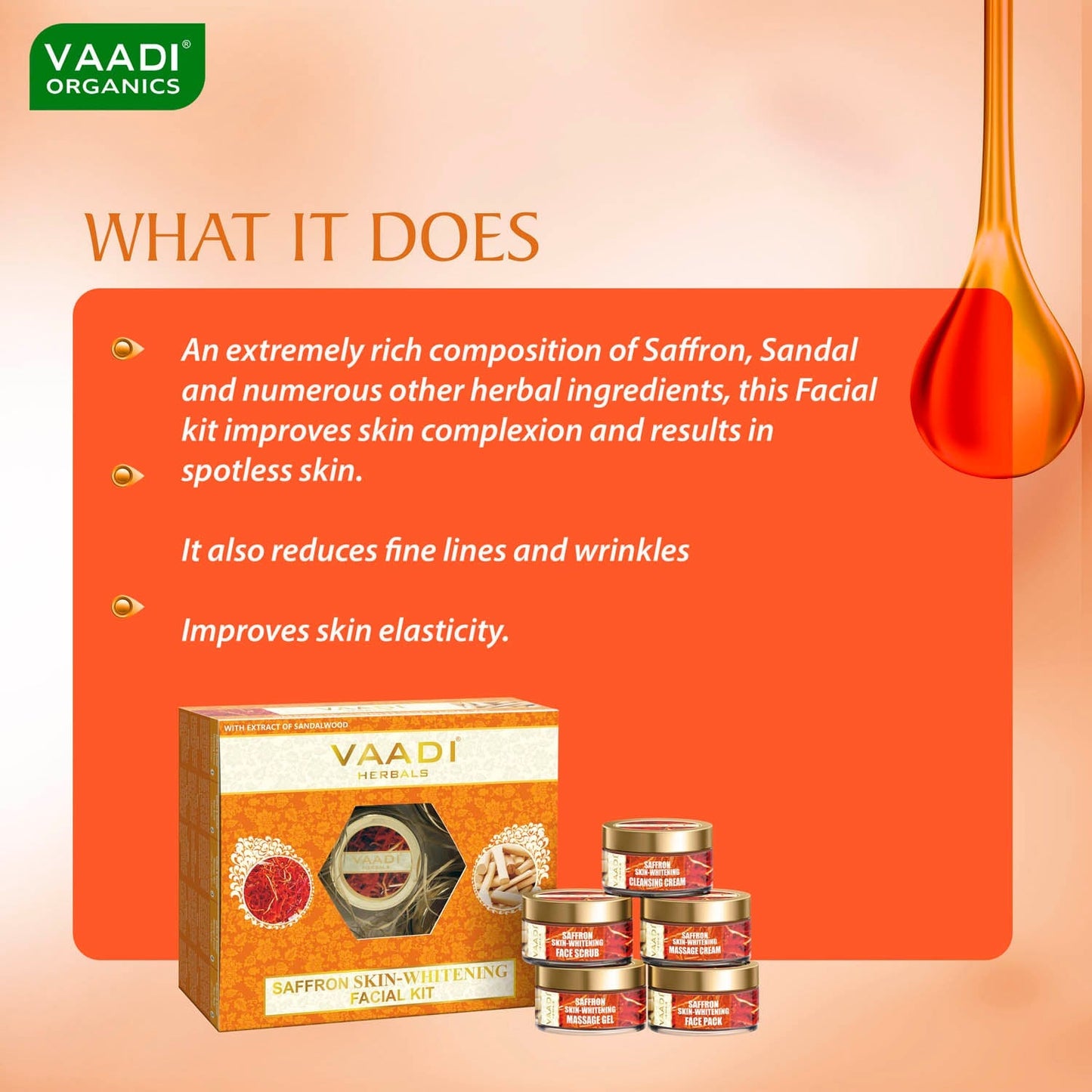 Skin Brightening Organic Saffron Facial Kit with Sandalwood oil, Orange Peel, Lemongrass & Shea Butter - Lightens Skin Tone (270 gms/9.6 oz)