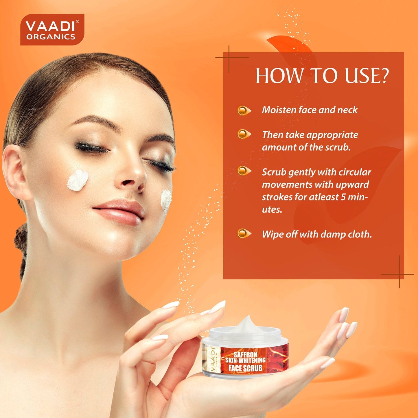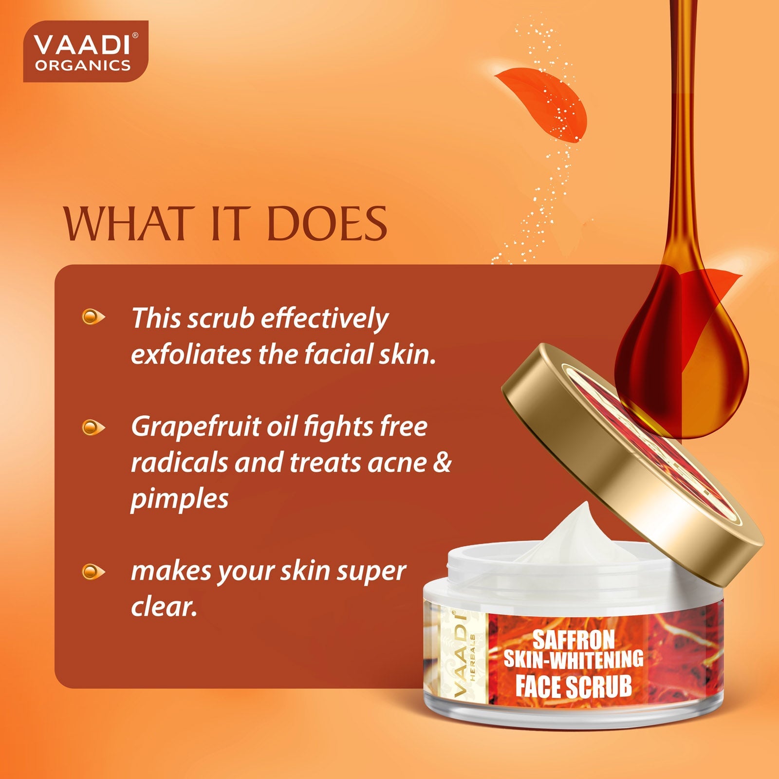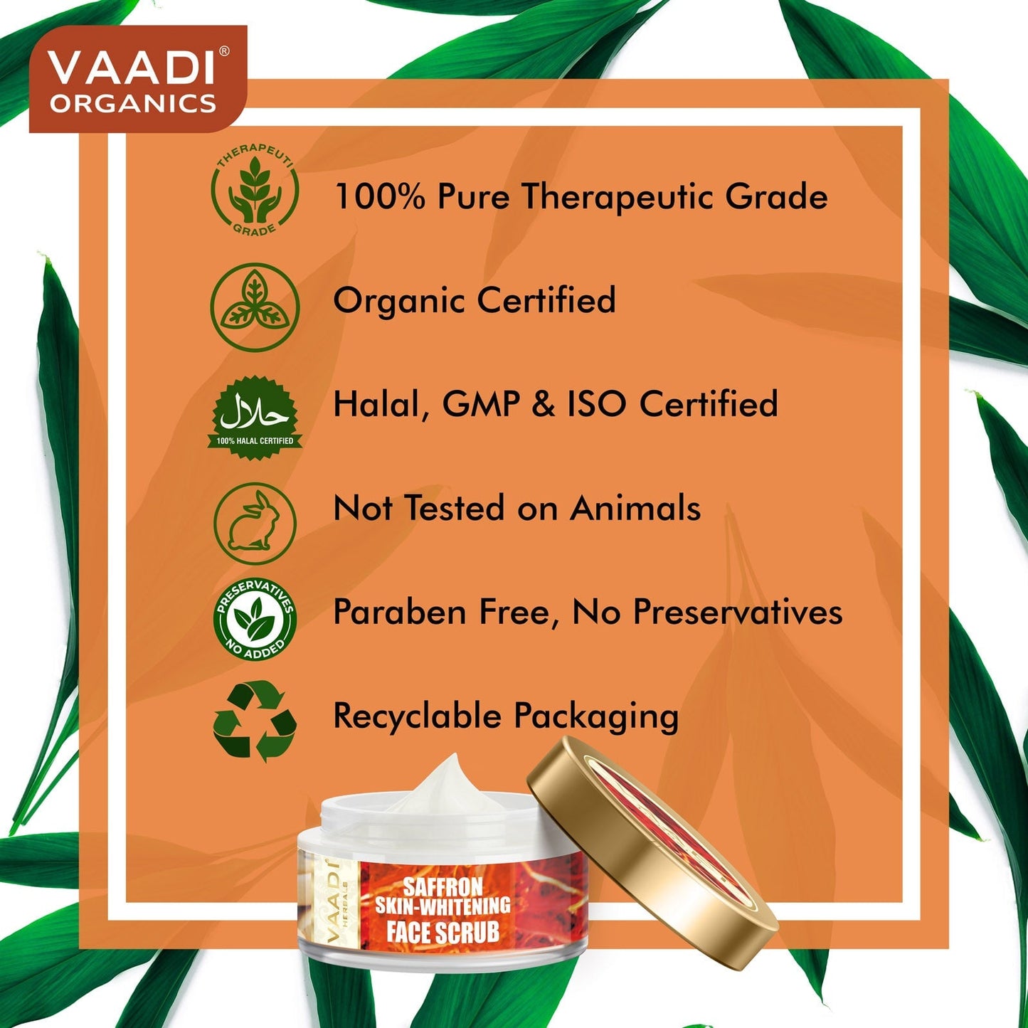 مقشر زعفران عضوي مبيض للبشرة بزيت الريحان وزبدة الشيا - يحسن البشرة - يقلل الانتفاخ والعلامات والبقع (50 جرام / 2 أونصة)