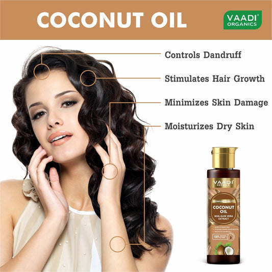100% Pure Coconut oil with Aloe Vera- Anti-hairfall-Moisturizes Dry Skin-Promotes Hair Growth-Skin Hydrating-For All Types of Skin & Hair- (120 ml / 4.05 oz)