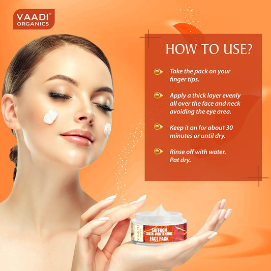 Skin Brightening Organic Saffron Face Pack - Brightens Skin Tone - Reduces Marks and Pigmentation (70 gms/2.5 oz)