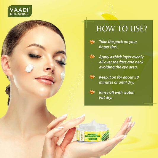 Anti Pigmentation Organic Lemongrass Face Pack with Cedarwood Extract- Removes Excess Oil & Impurities (70 gms/2.5 oz)