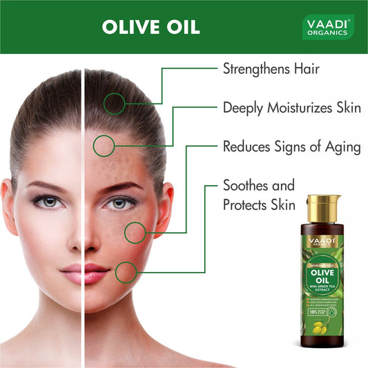 Cold Pressed Moringa Seed Olive Oil with Green Tea Extract- Repairs Damaged Hair-Deep Moisturisation -Skin Hydrating-Strengthens Hair -For All Types of Skin & Hair (120 ml / 4.05 oz)