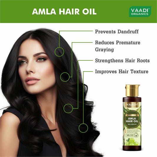 Bhringraj Amla Hair Oil with Hibiscus -Black & Thick Hair- Promotes Hair Growth-Strengthens Hair Roots- Reduces Hair fall- Strong & Healthy Hair- For All Hair Types- (120 ml / 4.05 oz)