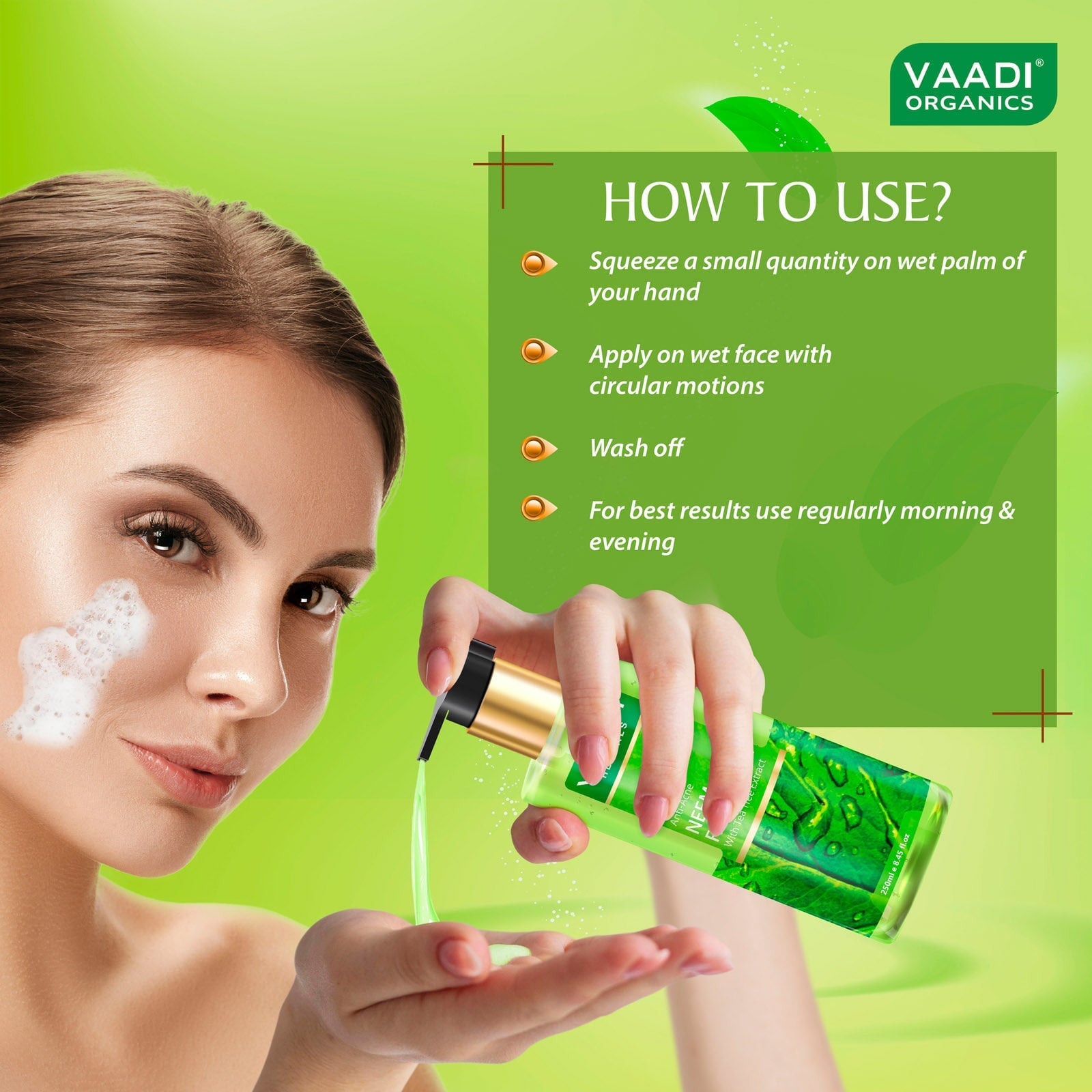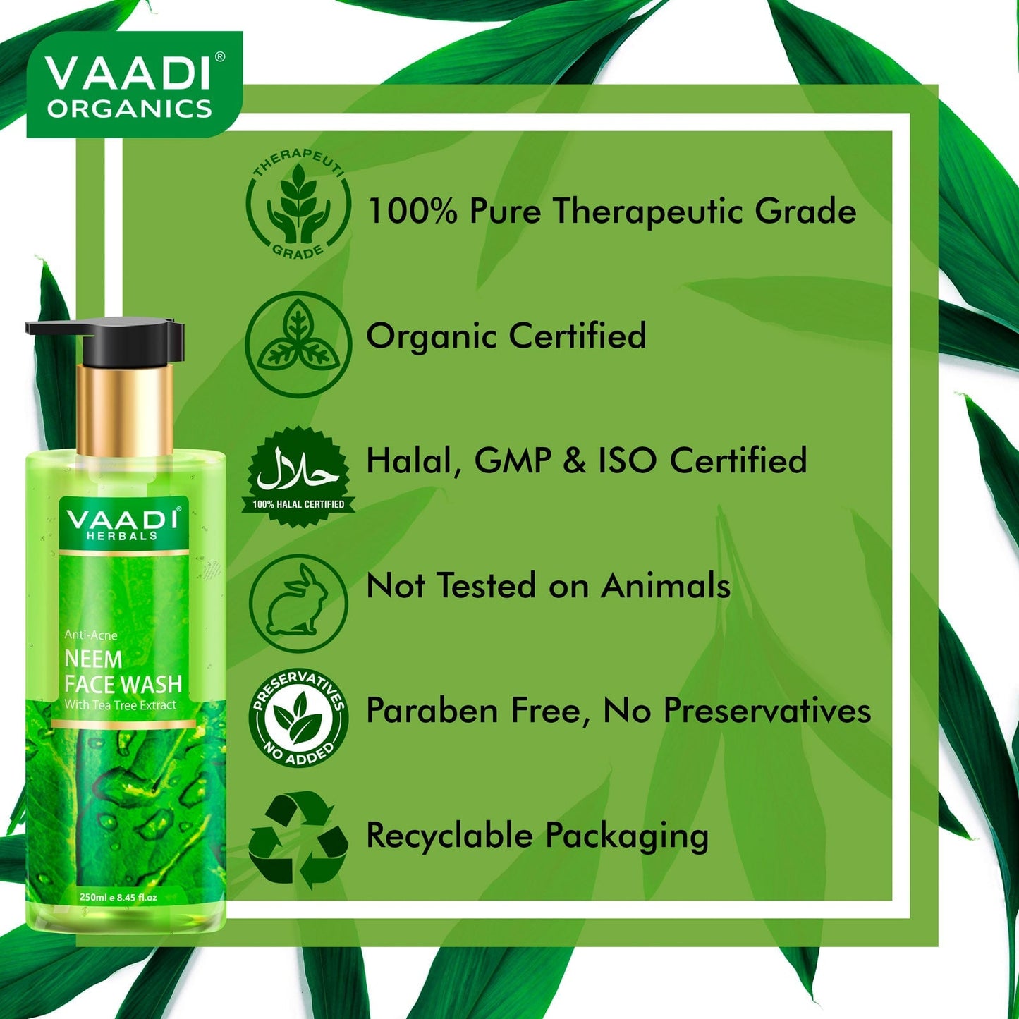 Anti Acne Anti-Bacterial Organic Neem Face Wash with Tea Tree Extract (2 x 250 ml / 8.5 oz)