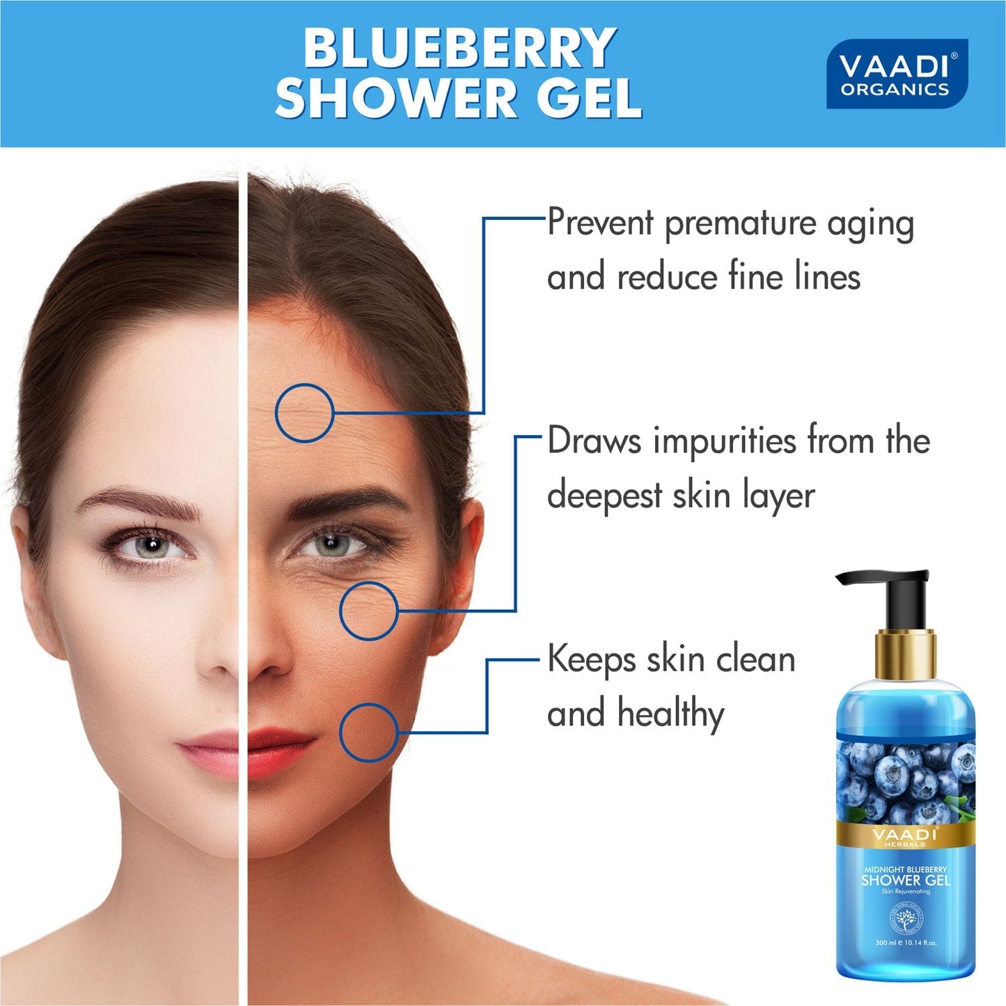 Vitamin rich blueberries in this shower gel prevent pre-mature aging, reduce fine lines, wrinkles and help improve skin elasticity.