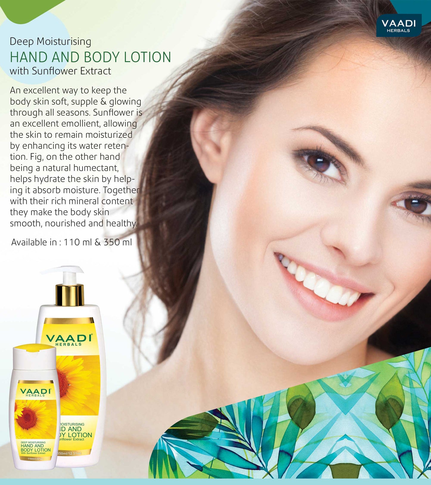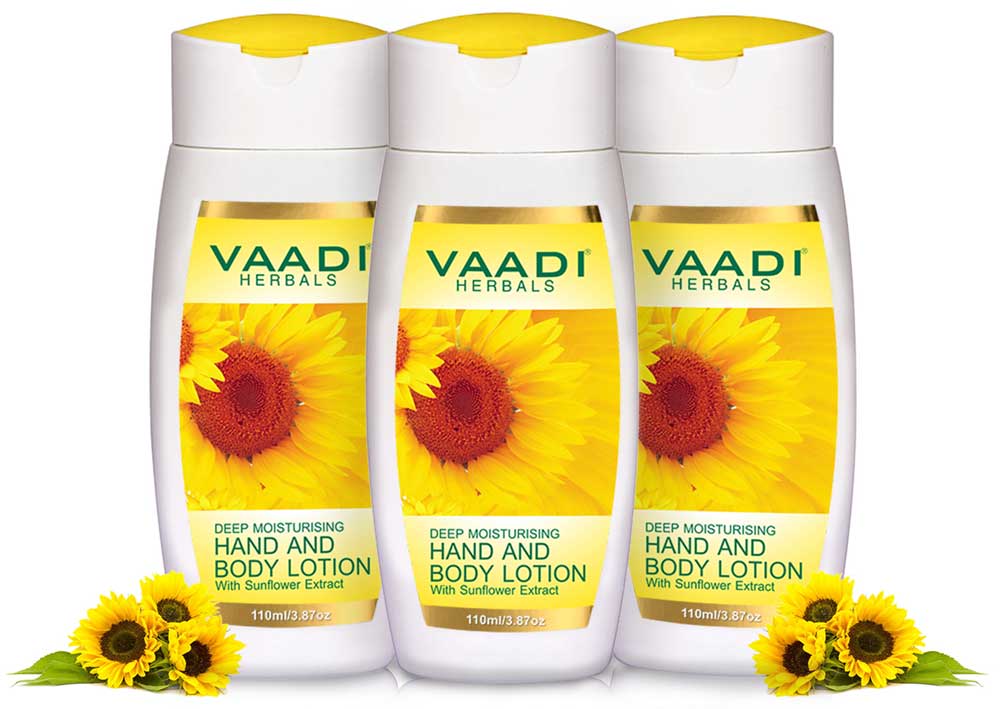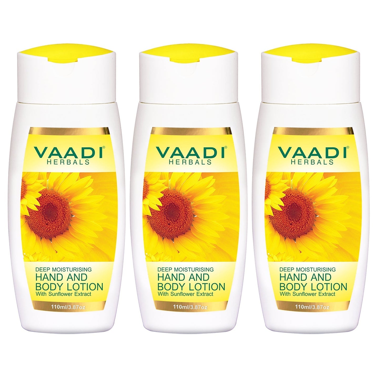 Hand & Body Lotion with Sunflower Extract - Enhances Water Retention in Skin - Keeps Skin Soft (3 x 110 ml/4 fl oz)