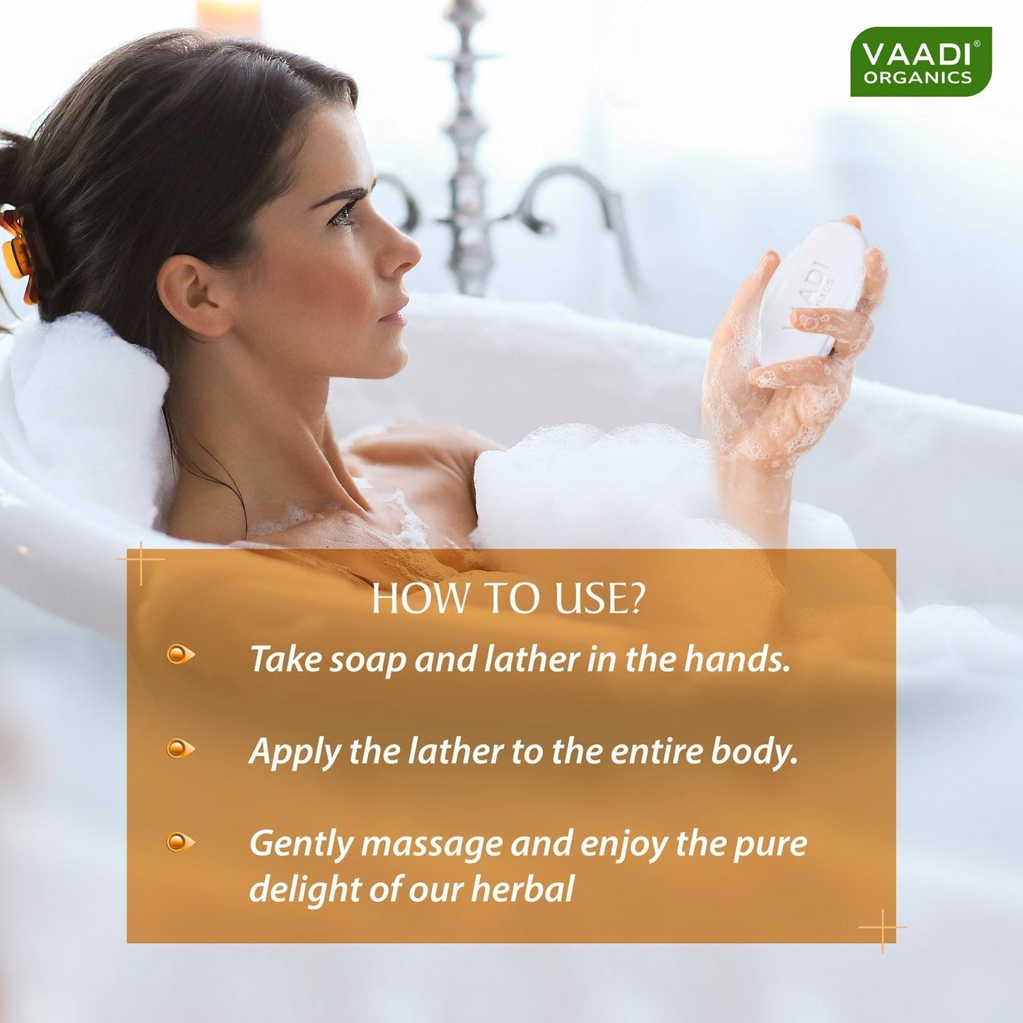 This soap is a scientifically chosen mix of herbal ingredients, to keep your skin soft, supple & hydrated. Emollient Almond helps the skin absorb water; while humectant honey helps skin retain the hydration. The skin is well-moisturized, soothed and glowing!