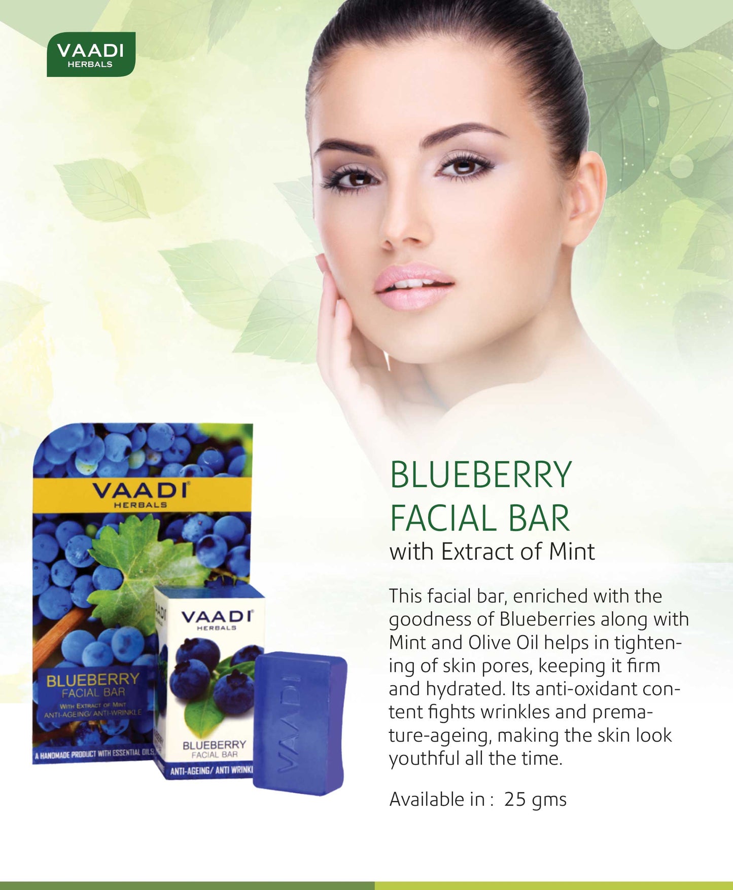 Blueberry Facial Bar with Mint Extract & Olive Oil - Prevents Wrinkles (4 x 25 gms/0.9 oz)