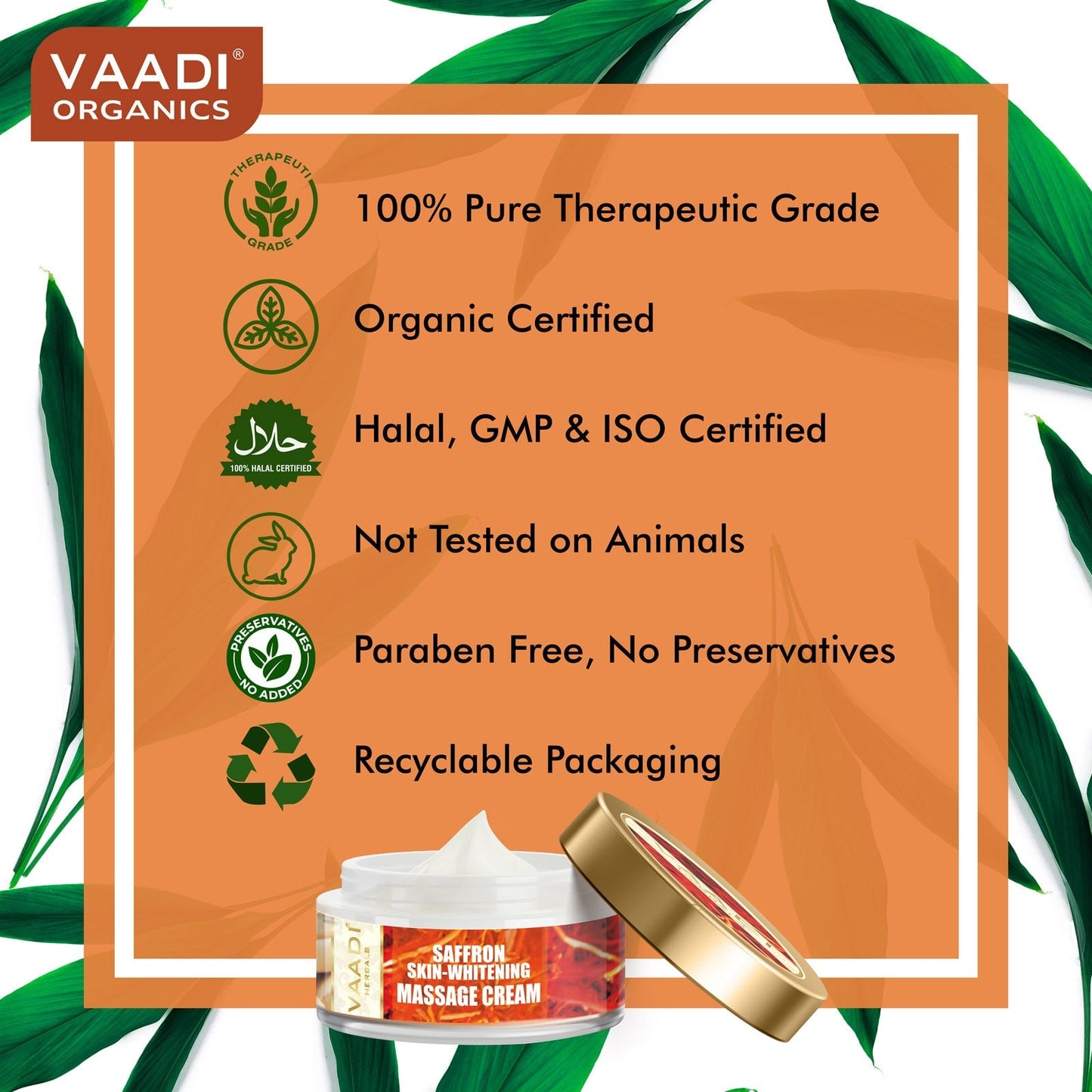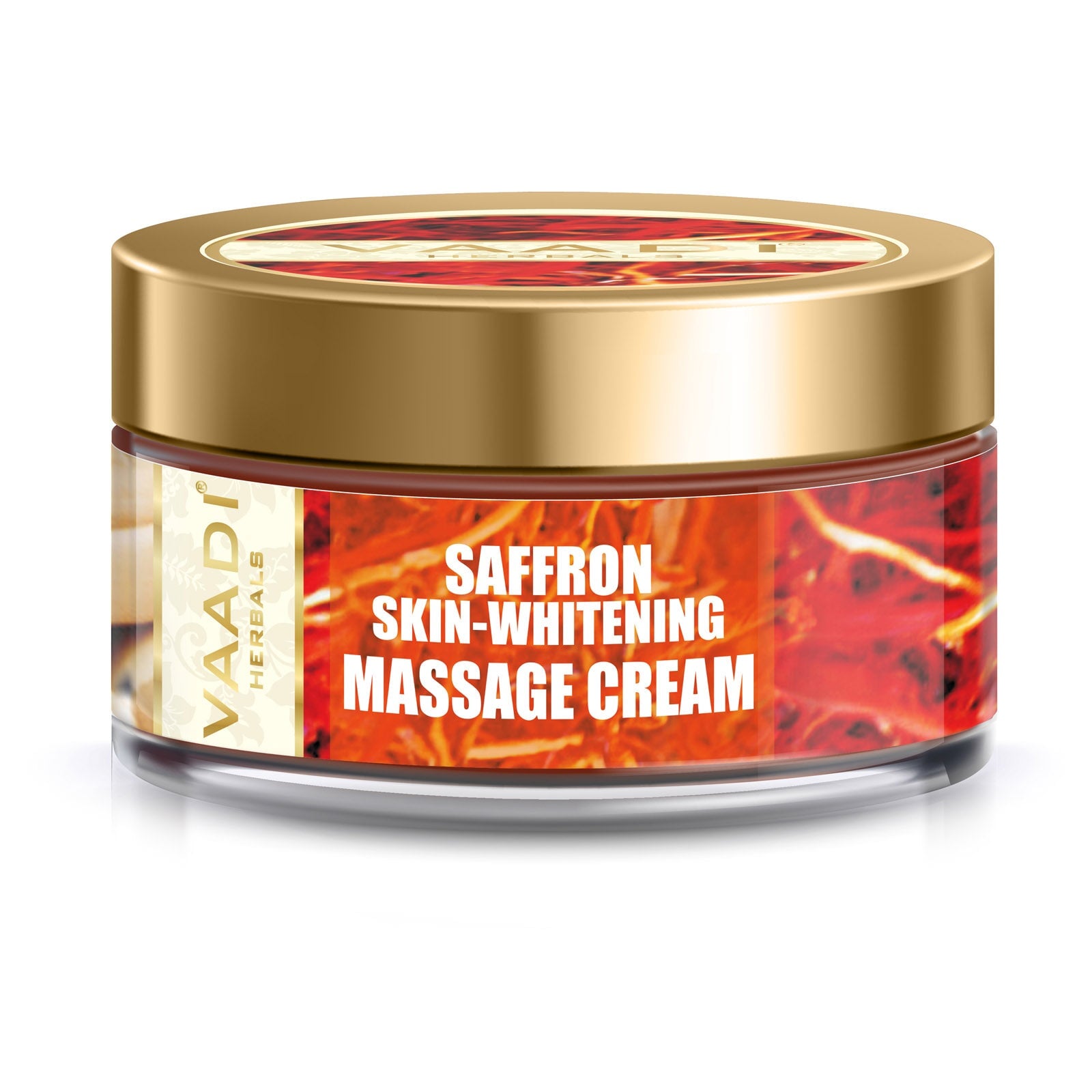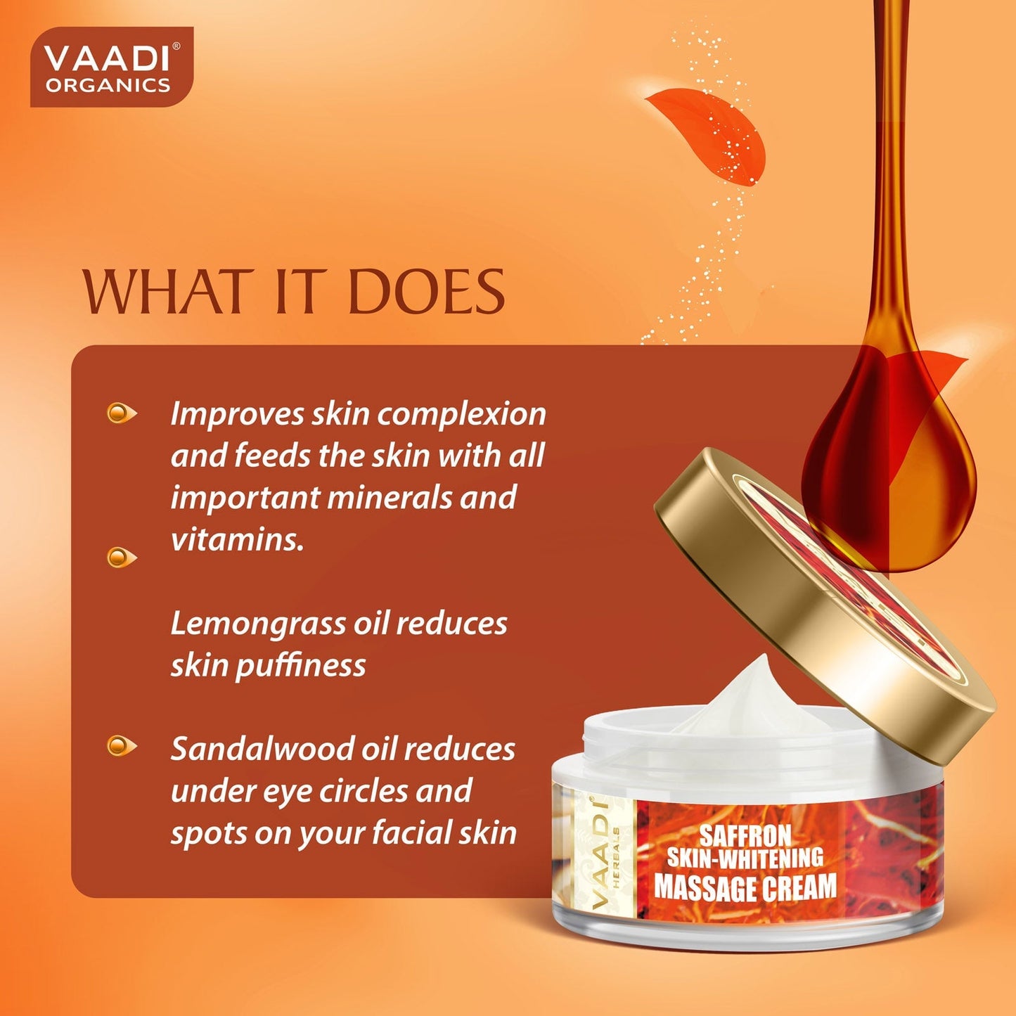Skin Brightening Organic Saffron Massage Cream with Basil Oil & Shea Butter - Improves Complexion - Reduces Puffiness, Marks & Spots ( 50 gms/2 oz)